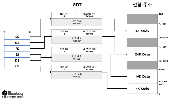 그리고 세그먼트 레지스터를 통해 접근할 때마다 저장한 값으로 GDT의 위치를 참조한다.