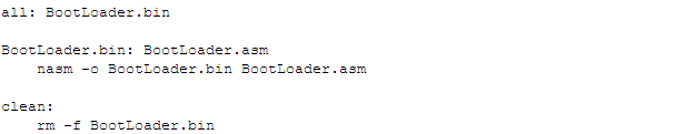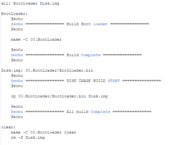 일단 현재는 부트로더 makefile만 있으므로 부트로더만 작성하도록 한다. 먼저 최상위 디렉토리의 makefile을 만들어보자.