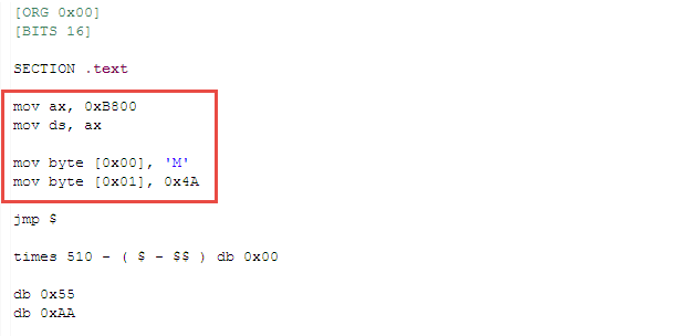 부트로더를 만들때는 마지막 2바이트에 0x55, 0xAA 넣는거만 지켜주면 BIOS가 "아 이게 부트로더 코드구나" 라고 인지하도록 할 수 있다. 진짜 간단한 부트로더를 만들어 볼건데. 어셈블리로 제작해야된다.