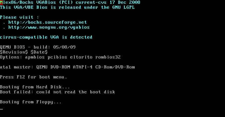 이게 이제 완성된 부트로더 라고 할 수 있는데.. 응? 실행하면 안된다. ㅡㅡ; os 이미지가 없는데 실행이 될 리가 있나..