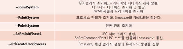 4. 필요한 드라이버들과 커널의 Executive 영역에 위치한 관리자들을 초기화