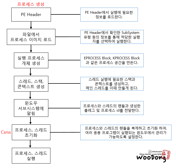 일단 또 그림을 보자. 프로세스 생성과정을 보면 csrss가 하는 역할을 좀더 이해할 수 있다.