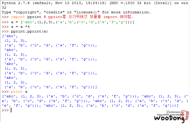 좀더 복잡한 출력을 할 때는 pprint 문을 사용한다.