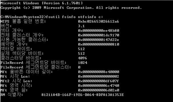 | 0x0040 – 0x0043 | 4 byte | Clusters per MFT Entry | MFT Entry의 크기 |
