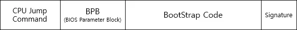 기본적인 구조는 아래와 같지만, Signaure 뒤에 추가적인 VBR 영역을 가지는 경우도 있다. (클러스터가 512바이트면 VBR = Boot Sector)