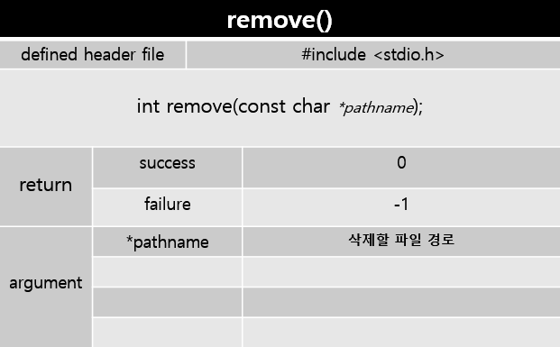 unlink() 도 파일을 삭제하는 함수인데, remove와 차이가 좀 있다. remove()에 대해 알아보자.