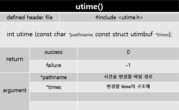 utime함수는 pathname에 있는 파일의 시간을 utimbuf라는 구조체를 참조하여