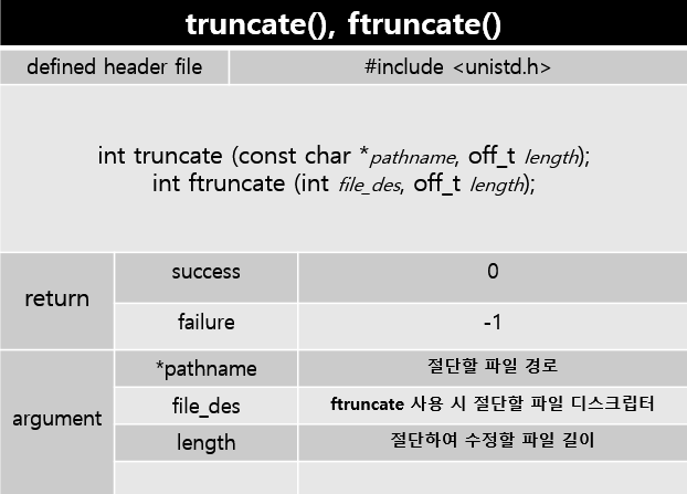 truncate와 ftruncate 두가지가 있는데, 앞서 공부한 함수들과 마찬가지로..