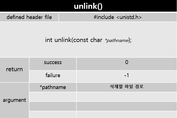 unlink함수는 디렉토리에 대한 삭제는 불가능했다.