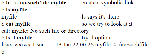 - 링크가 가르키는 파일이 아니라 링크파일 자체가 처리된다.
