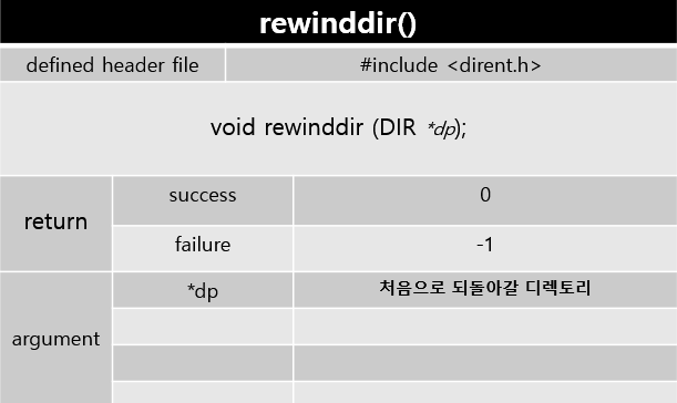설명은 필요가 없다고 생각한다. 다음 마지막 rewinddir() 이다.
