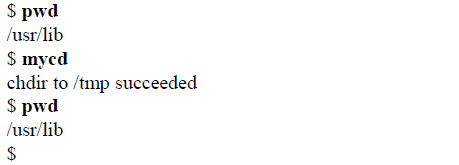 그리고 mycd(예제 코드 컴파일한 실행파일)은 셸의 자식 프로세스가 된다.