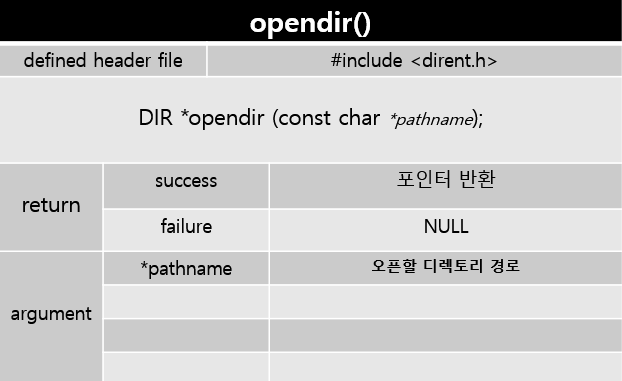 DIR 이라는 포인터가 반환되는데, 디렉토리 정보가 담긴 구조체의 포인터이다.
