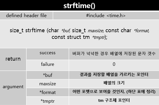 다음은.. 상대적으로 좀 복잡한? 함수이다. strftime(), 시간을 여러가지 형태로 반환하는 함수이다.