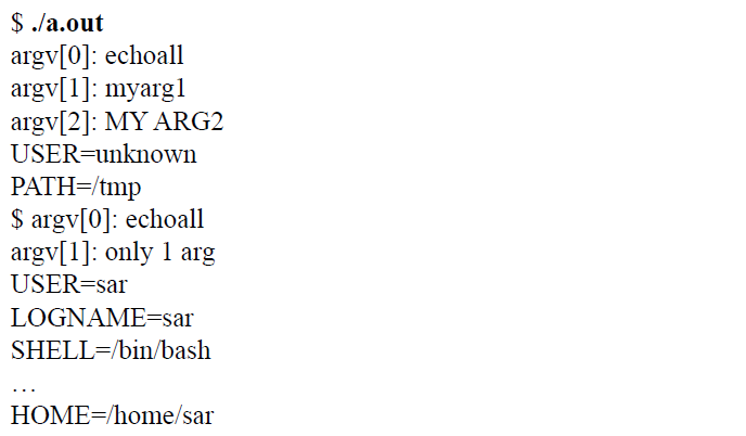 echoall은 인자들과 환경변수를 출력해주는 프로그램..
