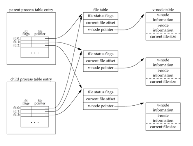 파일 디스크립터 외에도 부모와 자식이 공유하는 속성들이 몇가지 있다.