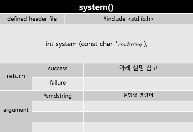 이녀석은 프로그램 내부에서 명령어를 실행할 수 있도록 하는 함수이다.