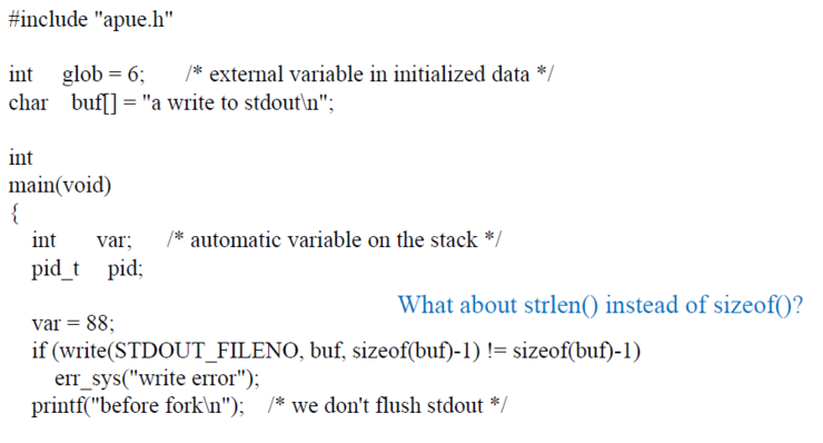 write함수 같은 경우는 버퍼링 없이 곧바로 표준 출력에 write된다. 그래서 "a write to stdout" 문자열은 한번만 찍힌것이고,