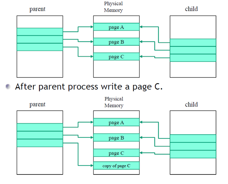 exec나 exit 가 호출되기 이전에는 자식 프로세스는 아예 부모의 주소 공간에서 실행된다.