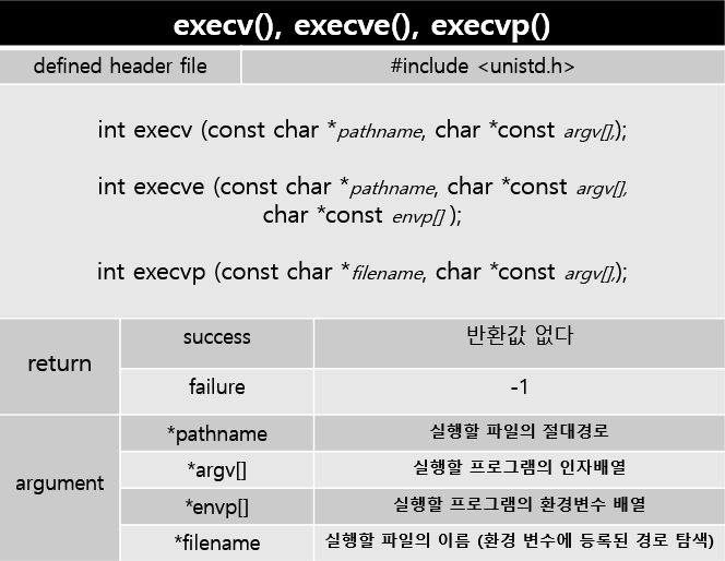 그때 나온 exec류 함수들 6가지에 대해 알아본다.