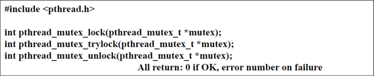 Pthreads 인터페이스에서 뮤텍스의 변수 형식은 pthread_mutex_t 인데,