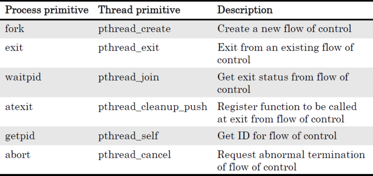 마지막으로 pthread_함수들이 프로세스 관련 함수들 어떤어떤 것들과 유사한지 매칭시켜보자.