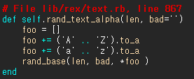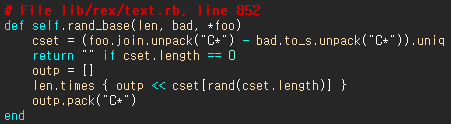 Rex::Text.rand_text_alpha()의 뼈대와 그 안에 쓰이는 rand_base()의 뼈대는 다음과 같다.