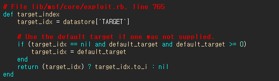 exploit.rb의 target() 메소드를 이용하여 희생자의OS별로 나누어 targets[]에 분류하고
