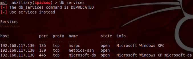 # db_services 를 입력하면 스캔했던 결과가 저장되어 있다.