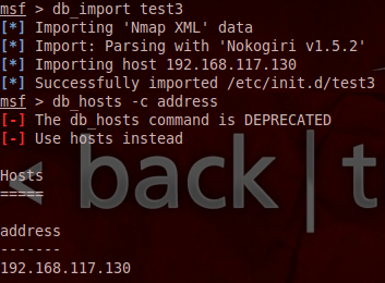 # db_hosts -c address (스캔된 주소만 뽑아내기!)