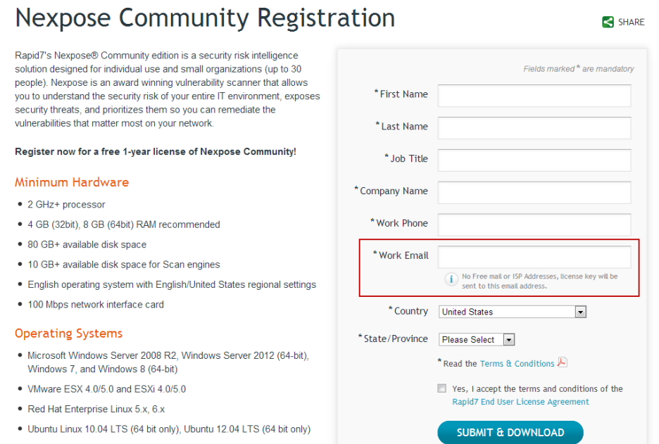 위 rapid7사의 url을 타고 들어가면 넥스포즈 커뮤니티 버전을 다운 받을 수 있다.