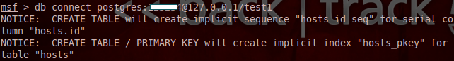 먼저 db_connect 명령으로 postgres-sql 데이터베이스 서버를 연다.