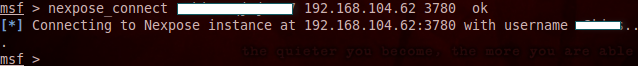 nexpose_connect username:password@host[:port] <SSL-confirm> 형태로 입력한다.