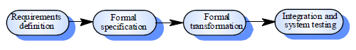 요구사항 정의 - 공식적인 명세화 - 공식적인 변환 - 통합 및 시스템 테스트 가 되겠다.