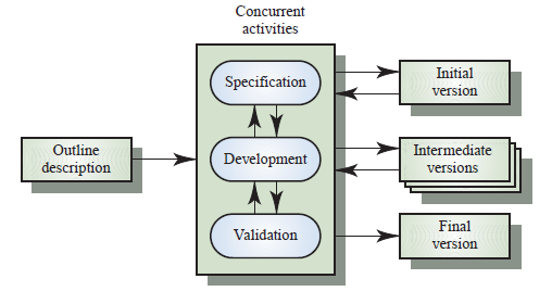 그림을 보면 계속 명세화 - 개발 - 검증 과정을 반복하면서 초기버전, 중간버전, 최종버전 을 내놓는 것이다.