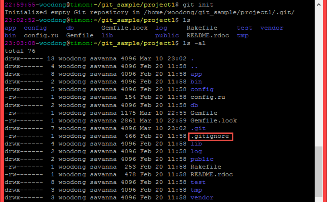 $git init 을 입력한다. 그러고 나서 숨김파일로 되어 있는 .gitignore 이라는 녀석을 수정해야 한다.