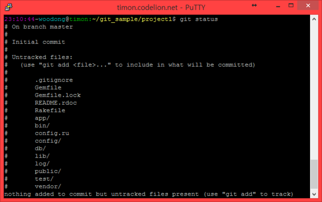 untracked files 아래에 항목들은 프로젝트 디렉토리안에 있는 모든 파일과 디렉토리를 나타내는 것이다.