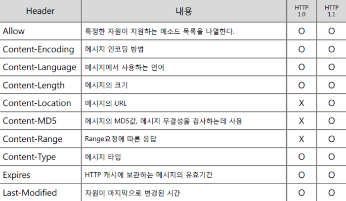 Content-Type: text/html - 메세지의 타입이다. (Entity Header)