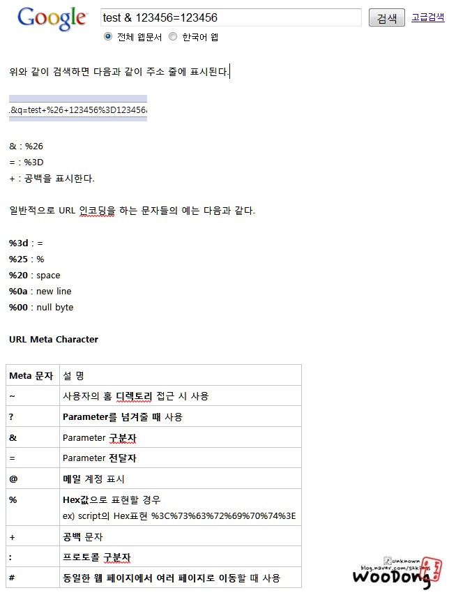그리고 아래에 URL 메타문자에 대한 내용도 첨부하였음.