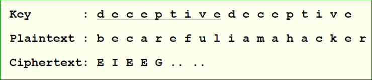 becarefuliamahacker 라는 평문을 deceptive 라는 키값으로 암호화를 시키면