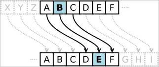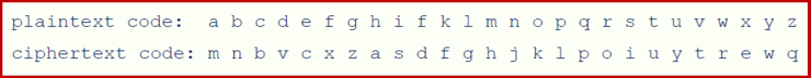 말그대로 평문 문자를 각각 대응하는 값으로 치환하는 간단한 알고리즘이다.