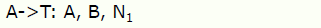 - A와 B의 세션키, A의 아이디를 T와 B의 세션키로 암호화 시킨 값