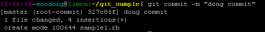 관리 대상으로 지정이 되었지만 이제 git 저장소에 반영하는 commit(커밋) 명령을 또 해줘야한다.
