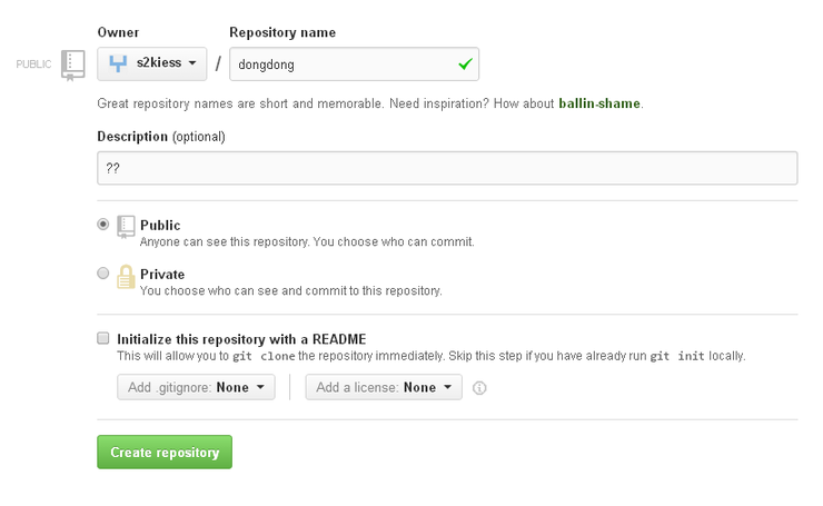 간단하게 이름과 설명을 적고 Create repository를 누른다!