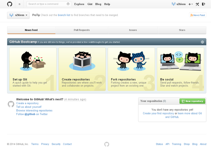 가입을 하고 나면 처음 나오는 github 화면이다.