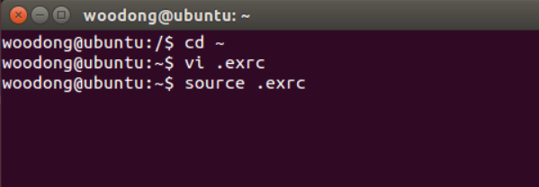저장하고 아래와 같이 $source .exrc 를 입력하면