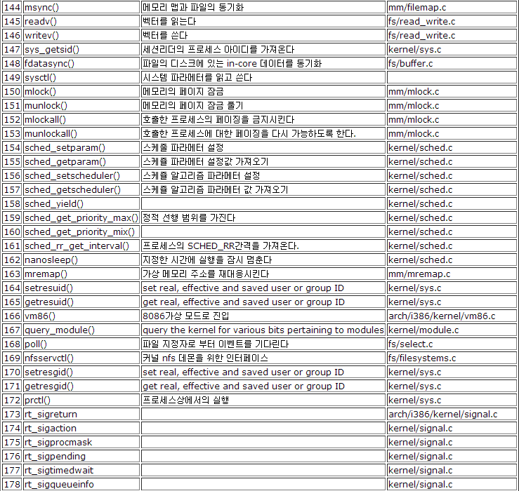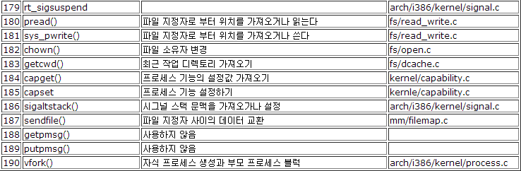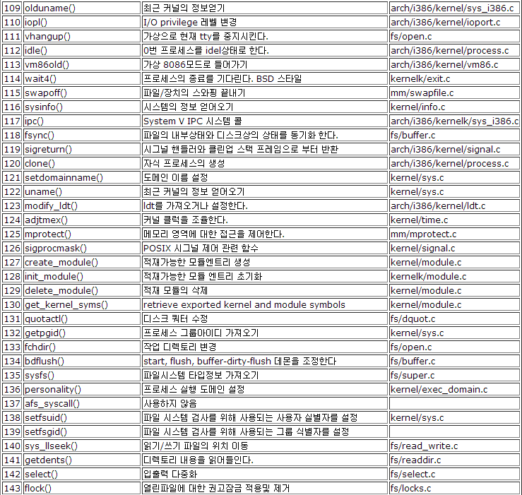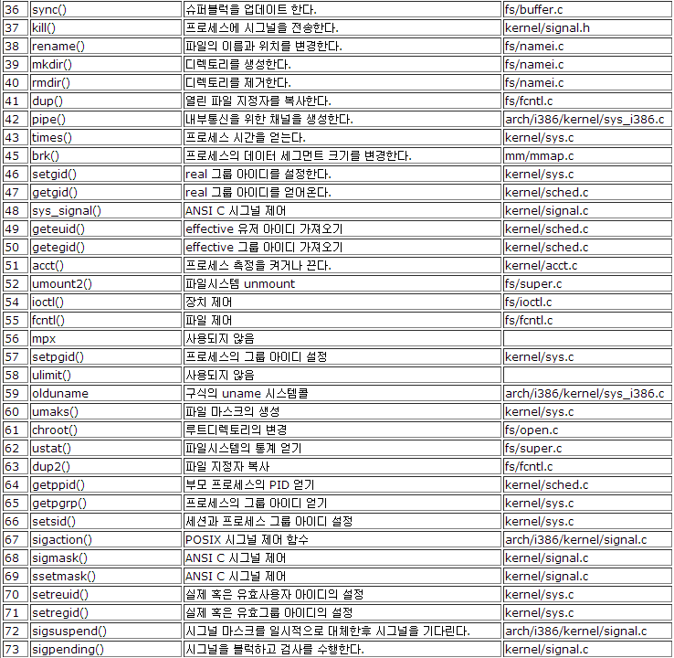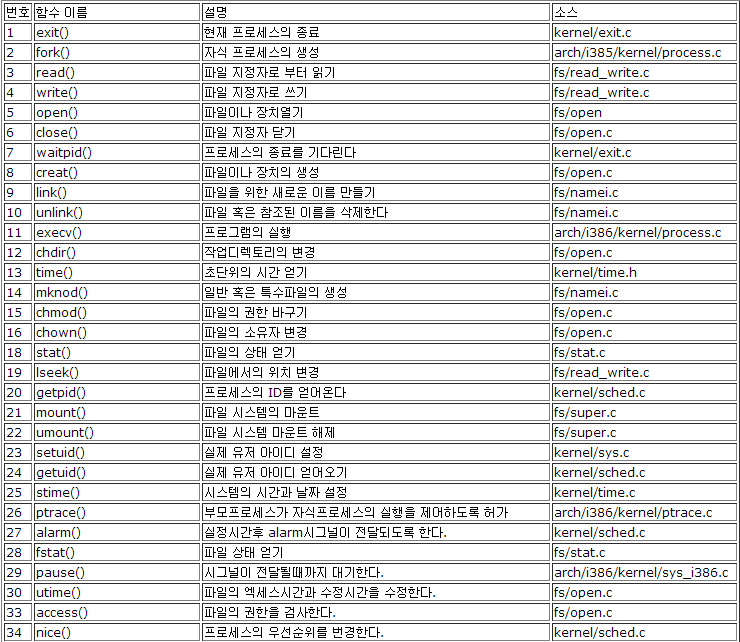 일단 여기서는 시스템콜 함수 목록을 정리한 것임. (참고용)