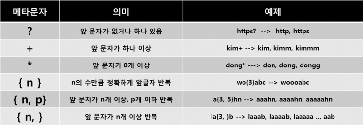 정규표현식에서 사용되는 여러가지 문자들에 대해 알아봅시다.